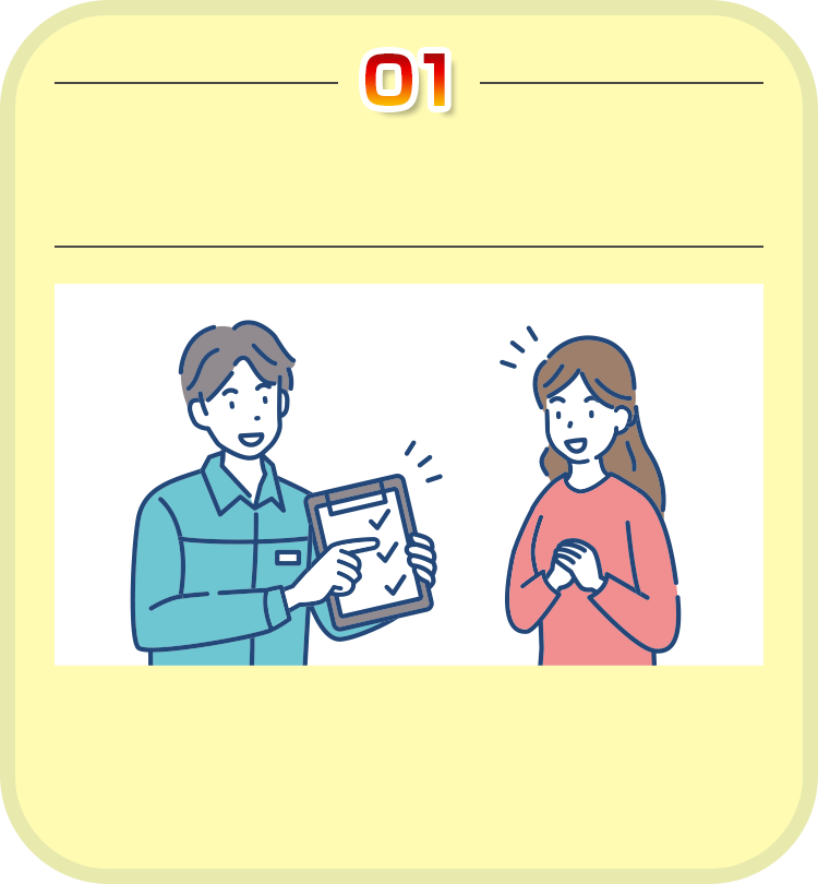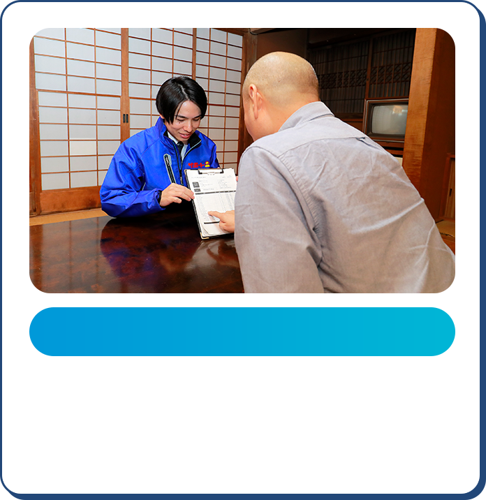 お客様に理解して頂くため、説明時間を十分に確保しております。ご不明点ありましたら、なんでもお聞きください。